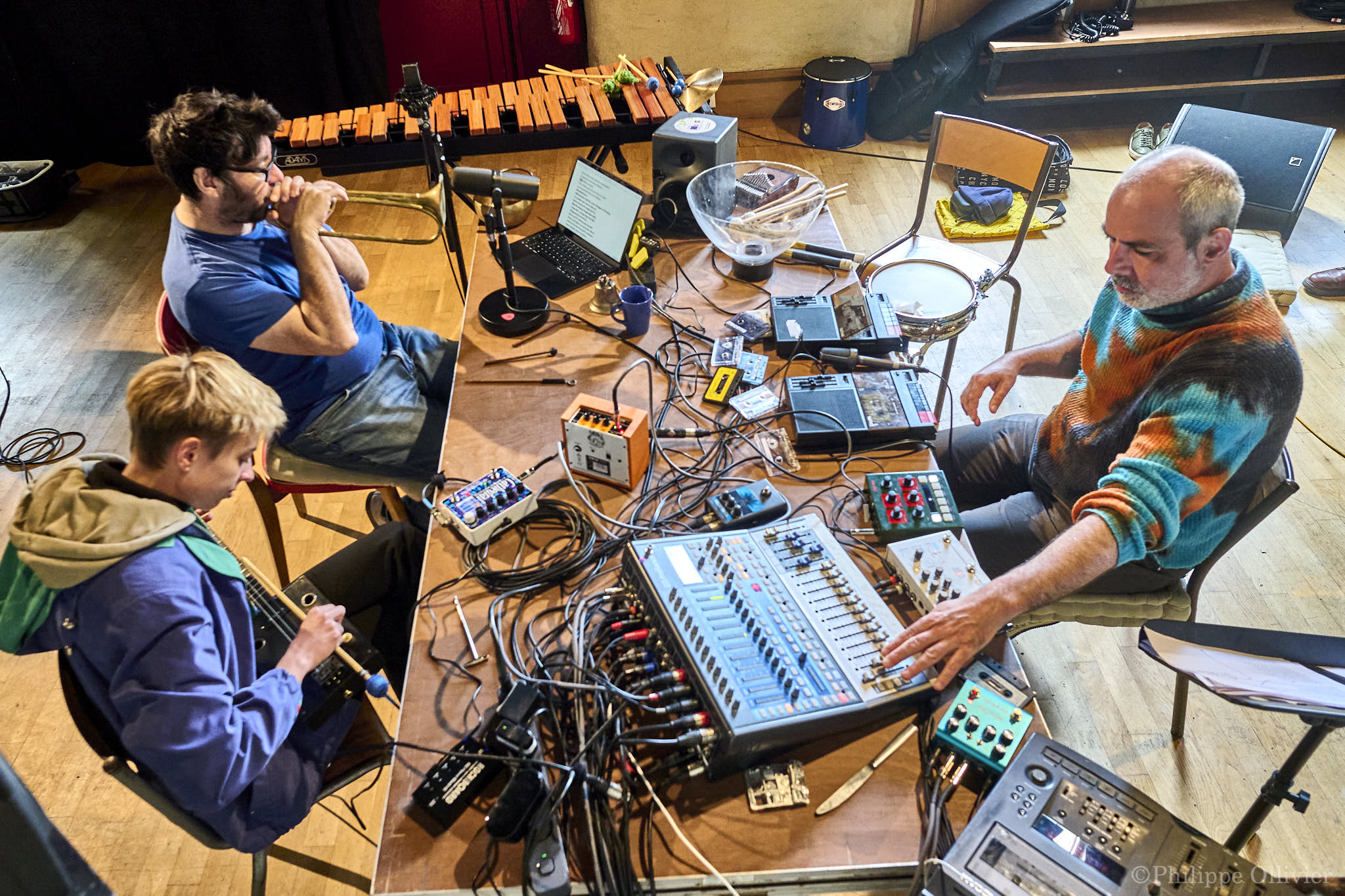 Le Logelloù met toute l’année à disposition des musiciens et créateurs sonores ses deux salles de spectacle, pour des résidence de recherche et création. En 2027, nous disposerons également du nouvel Atelier Christine Groult, ce qui nous permettra d’accueillir plusieurs projets en même temps et de favoriser les rencontres entre des artistes qui logeront ensemble à deux pas du Logelloù.